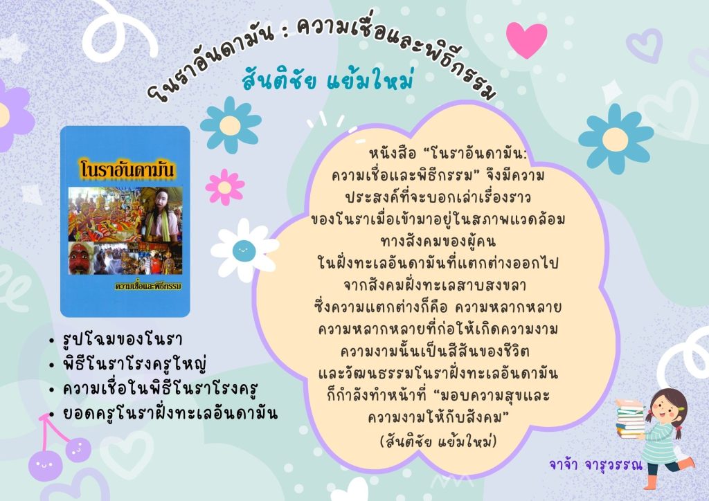 หนังสือข้อมูลภาคใต้ ชั้น 4 เลขเรียกหนังสือ GV1796.N67 ส63 2560 Click ต้องการยืมตัวเล่ม Book Delivery Service Click รายชื่อหนังสือแนะนำเดือนนี้ Click