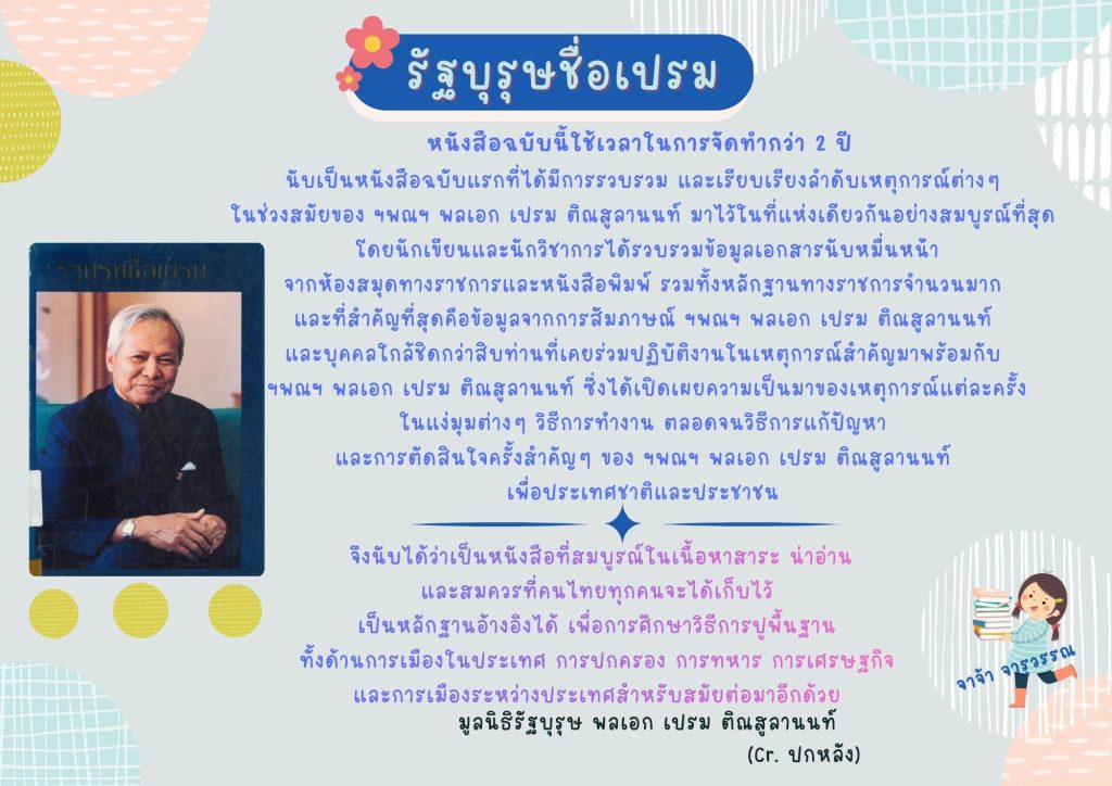 หนังสือข้อมูลภาคใต้ ชั้น 4 เลขเรียกหนังสือ DS577.22 ร63 2538 Click ต้องการยืมตัวเล่ม Book Delivery Service Click รายชื่อหนังสือแนะนำเดือนนี้ Click