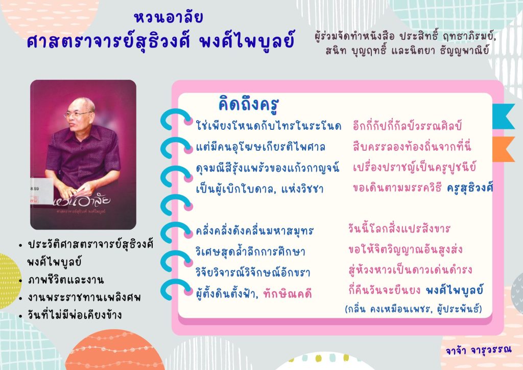 หนังสือข้อมูลภาคใต้ ชั้น 4 เลขเรียกหนังสือ CT1548.S9 ห54 2560 Click ต้องการยืมตัวเล่ม Book Delivery Service Click รายชื่อหนังสือแนะนำเดือนนี้ Click