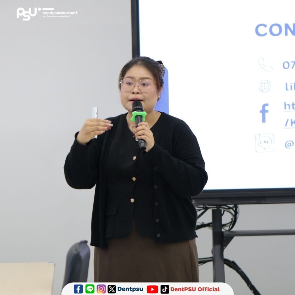 หัวข้อ “ฐานข้อมูลอิเล็กทรอนิกส์ทางด้านทันตแพทยศาสตร์ และบริการสนับสนุนการตีพิมพ์ผลงานวิชาการฟรี” โดยคุณประไพ จันทร์อินทร์ บรรณารักษ์ ชำนาญการพิเศษ